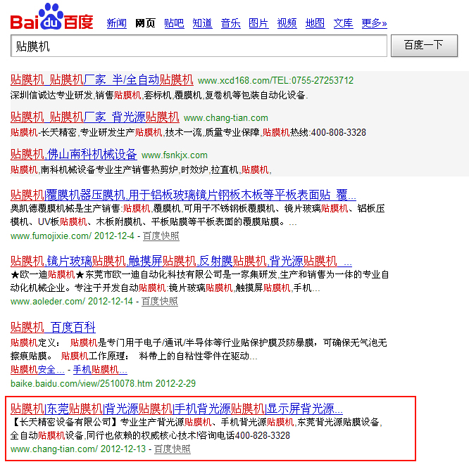 【優化】長天精密設備:貼膜機百度第2,東莞貼膜機百度第1
