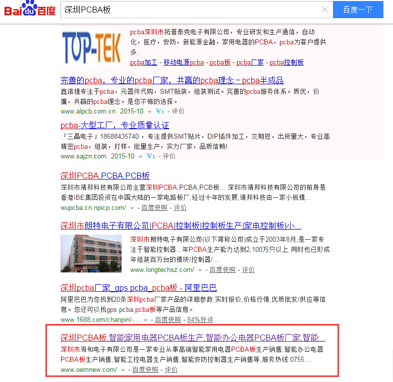 【優化】 海和電子:深圳PCBA板,智能家用電器PCBA板生產,等多個關鍵詞排在百度首頁